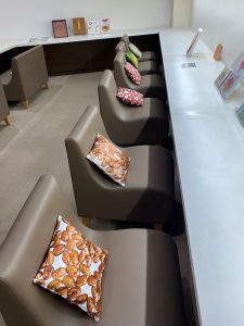 兵庫県姫路市の株式会社 御座候(ござそうろう)の敷地内にあります世界初の「あずきミュージアム」に弊社が製作しました角型クッションが飾られてます。